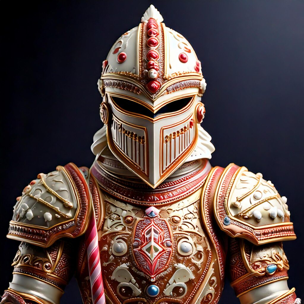 Hier steht in der Mitte ein stattlicher Lebkuchenritter, der eine Rüstung aus Zuckerguss trägt. Diese ist schön verziert. Ohne Bewegung steht er nur da. An der Frontwand sehen sie einen riesigen Backofen, der immer wieder neue Lebkuchenwächter, über ein Band in einen Trichter führt. Da sie so auf das Backpulver fixiert sind entscheiden sie sich nochmal die Gänge abzusuchen und nach einem Hinterraum oder ein Lager ausschau zu halten. Auf dem Weg finden sie eine Tür, die sie jedoch nur nach außen führt. Ein weiterer Gang ist durch Bonbonsplitter verschüttet. Sie entscheiden sich zurück zum Backofen zu kehren und die weitere Produktion zu stoppen. Fluffy will sich um den Ofen kümmern und der Schneemann erweckt durch seine Berührung den Ritter zum Leben. Nach einiger Zeit wird der Trichter verstopft und die frisch gebackenen Kreaturen fangen an sich zu bewegen und die Gruppe anzugreifen.